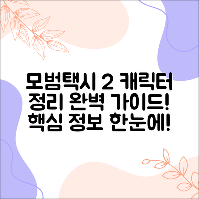 모범택시 2 등장인물 완벽 가이드